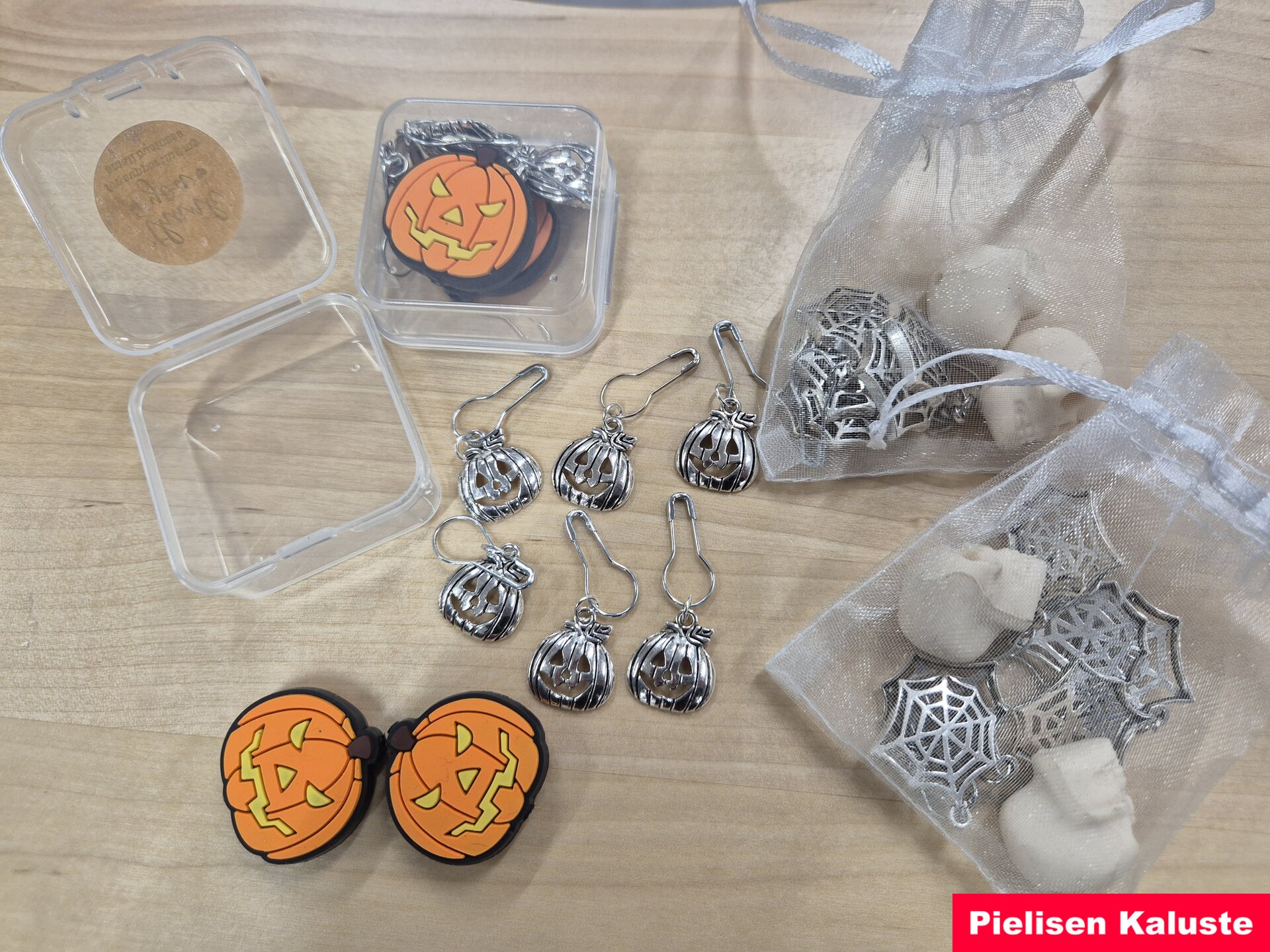 Ihana setti jossa 6 kpl silmukkamerkkejä sekä 2 kpl silikonisia puikkostoppareita.